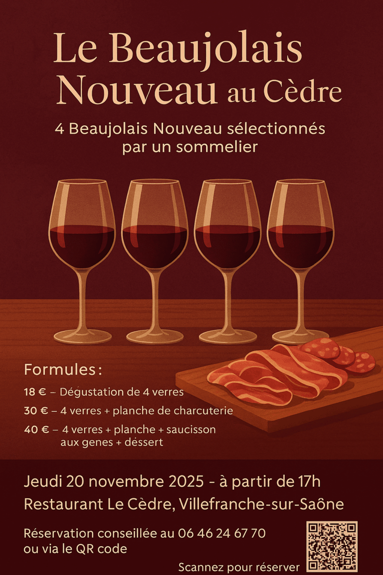 Côté cave, vous pourrez découvrir et déguster une large selection de vins du Beaujolais et d’autres régions de France.