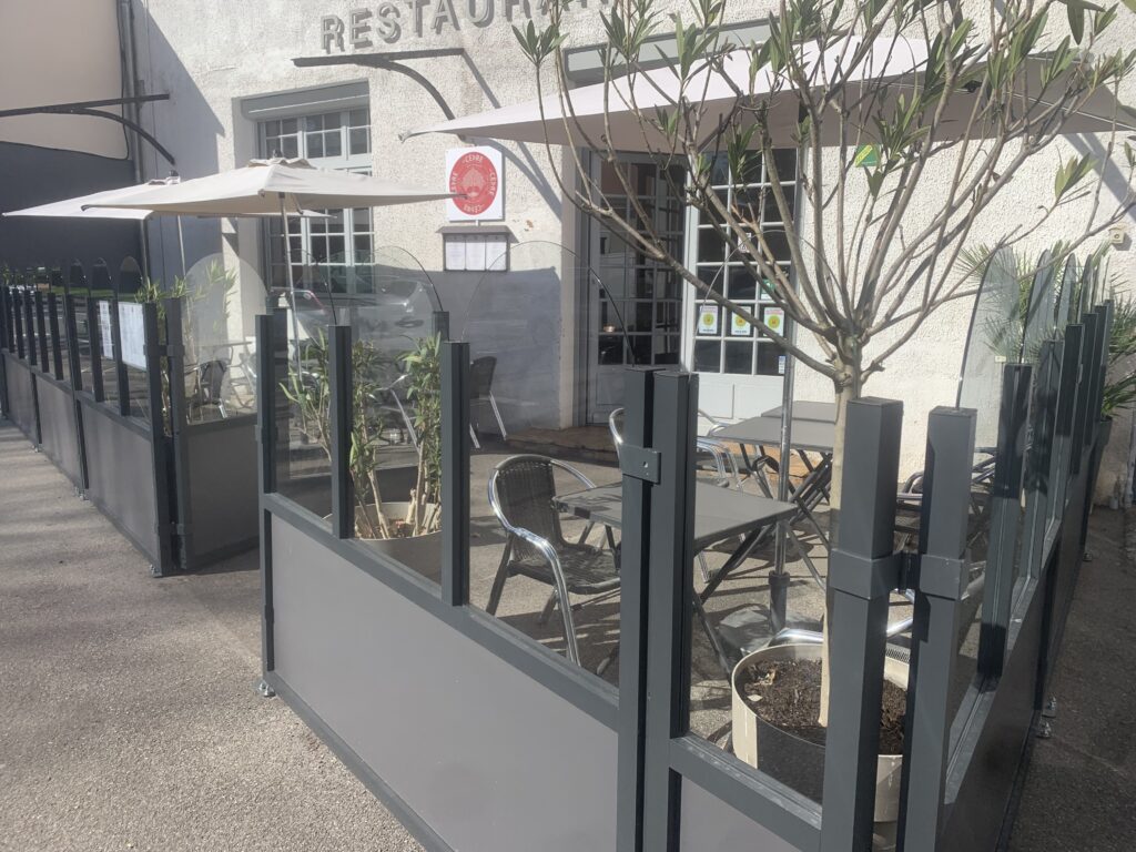 Une verrière avec vue sur le jardin, ou au bar ambiance bistrot.